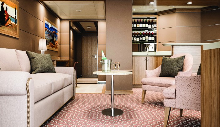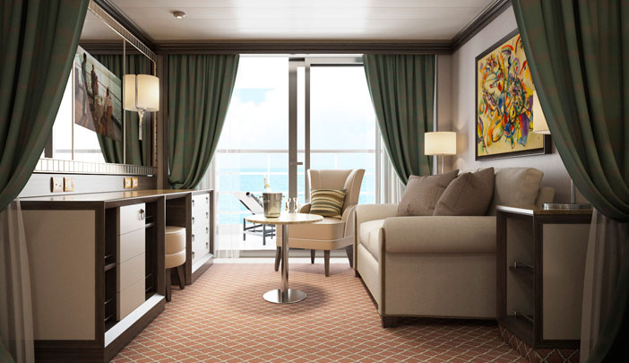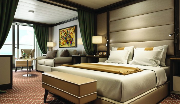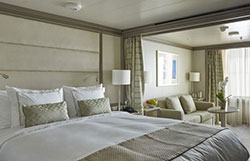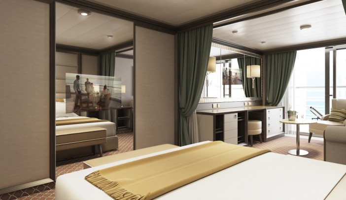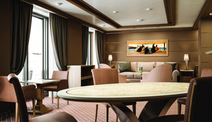 Picture yourself taking a delicious breakfast on your private veranda. Imagine watching the sun set, a flute of chilled champagne in hand, setting sail for your next destination. Prestigious, classic and sophisticated, this stylish apartment suite offers the ultimate in finest accommodation on board. Set aside for those who seek a superlative level of space, comfort and service, Owner’s Suite has it all. The adjoining bedroom, with its en-suite bathroom, offers its own spectacular sea views.The marbled bathroom(s) provides guests with a full-sized tub and separate shower, plus a powder room, complete with Bulgari® bath amenities or a choice of other European Brands.Premium mattresses and Pratesi® fine bed linens and down duvet covers offer guests the ultimate level of comfort, and along with an Illy® Espresso Machine, the suites are equipped with a refrigerator and bar setup, stocked with your preferences, Flat screen HD TV and a separate dining area.