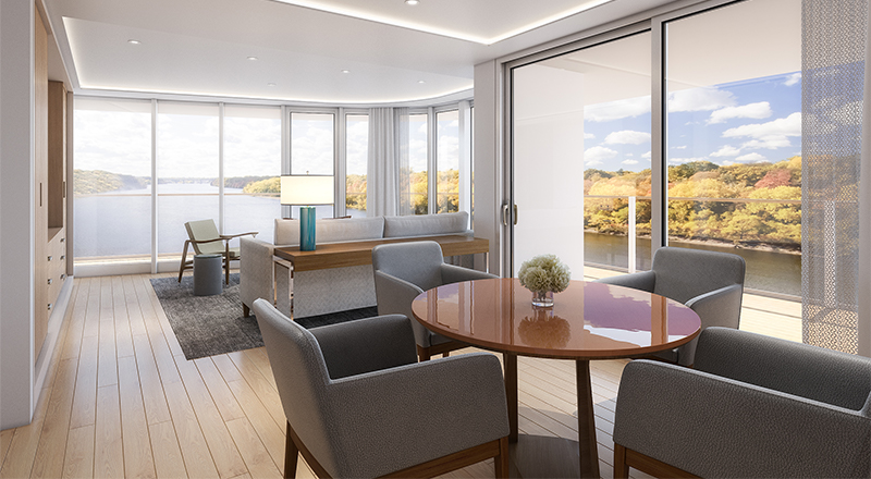 Stateroom size: 657–1,024 sq ft (includes private veranda)River-view suite with private wraparound balcony, private veranda and well-appointed living room & dining areaWheelchair Accessible (#300 only)12 PM Embarkation12 PM priority stateroom accessKing-size Viking Explorer Bed (optional twin-bed configuration) with luxury linens & pillowsFree Wi-Fi (connection speed may vary)42" flat-screen LCD TV with intuitive remote & complimentary Movies On DemandAdditional 42" flat-screen interactive LCD TVs in sitting area110/120 volt US-standard outlets & USB portsLarge private bathroom with spacious glass-enclosed shower, bathtub, double-sink vanity, heated floor, anti-fog mirror & hair dryerPremium Freyja® toiletriesPlush robes & slippersTelephone, safe, refrigeratorIndividual climate controlPurified water refilled dailyWelcome bottle of champagneMini-bar with alcoholic beverages, soft drinks, water & snacks (replenished once daily)BinocularsTraditional Norwegian Marius-weave blanketPersonal coffee machine with premium coffee & tea selectionsStateroom steward & twice-daily housekeeping24-hour room serviceComplimentary laundry & shoe shine servicesSilver Spirits beverage package includedUnder-bed suitcase storage spaceRoomy wardrobe with wooden hangers