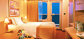 Premium Balcony. Most balcony staterooms also have a separate sitting area for your added comfort. You'll also find that sitting outdoors where you can relax, enjoy the privacy and admire the passing scenery will add immensely to the pleasure of your cruise. Every Carnival guest is assured of spacious, comfortable accommodations. All staterooms have carpeting, ample drawer and closet space, private facilities (shower, basin and toilet), telephone and color television showing first-run films. Our SuperLiners all feature staterooms above ocean level for a more comfortable cruise.