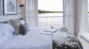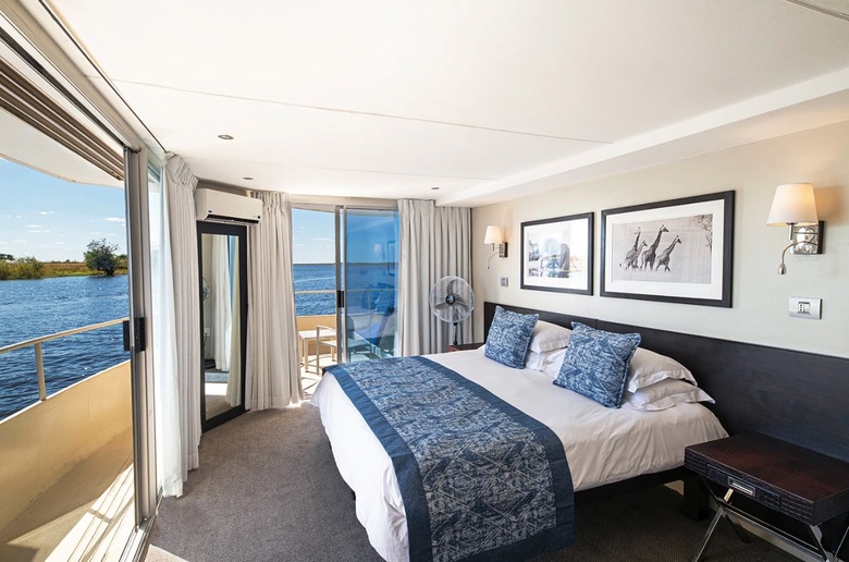The intimate 28-passenger Zambezi Queen made her debut in 2009 in one of the world’s most captivating places, Africa’s legendary Chobe River. Unlike a typical river cruise that travels from one port to the next, the Zambezi Queen was designed for an entirely different purpose—to facilitate optimal game viewing along the Chobe. As this floating hotel drifts along the river, animals perceive no threat and come to the water to drink and bathe, affording you with an amazingly up-close view and once-in-a-lifetime experiences. Additionally, to ensure no harm to the environment, the eco-friendly Zambezi Queen uses a water jet propulsion system, fuel-efficient and low-emission generators, and a solar heating system. The Zambezi Queen provides guests with all the modern-day conveniences to ensure a perfect journey. The top deck features an enclosed air-conditioned dining room, lounge and bar, as well as an open-air Sun Deck complete with a plunge pool. The 14 suites, including four master suites, feature air-conditioning and a private balcony where you can enjoy unobstructed views of the river and African landscape. Wake up to the sight of an elephant drinking from the river, or watch a fish eagle take flight—all from the comfort of your own luxurious bed. Bountiful breakfasts and lunches prepare you for your invigorating daily adventures, and during the evening, enjoy multi-course dinners. Throughout the day, be treated to complimentary South African wines, beer, local spirits, soft drinks and bottled water. On one of the nights, enjoy an African-themed dinner with traditional dishes and entertainment.